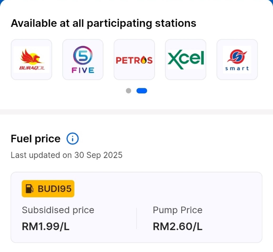 * Pump price and subsidised price are correct as of 1 October 2025.