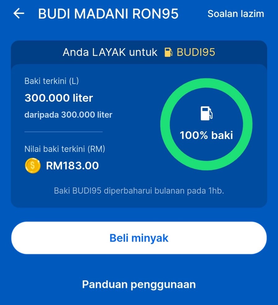 Penting untuk anda tahu: BUDI95 ialah program subsidi petrol, bukan petrol percuma. Dengan program ini, rakyat Malaysia yang memiliki lesen memandu sah boleh membeli sehingga 300 liter RON95 setiap bulan pada harga subsidi. Matlamat program ini jelas, supaya manfaat harga rendah sampai kepada mereka yang layak, mengelakkkan salah guna dan membantu kewangan negara kekal stabil.