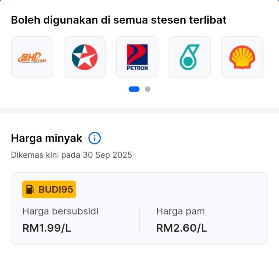 Selain itu, apabila anda mengisi minyak di PETRONAS, manfaat BUDI95 tetap boleh digunakan melalui SETEL dalam TNG eWallet, menjadikan pengalaman anda kekal pantas dan lancar.