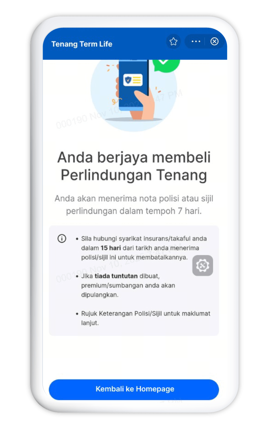 Perlindungan Tenang insurans selama 1 tahun
